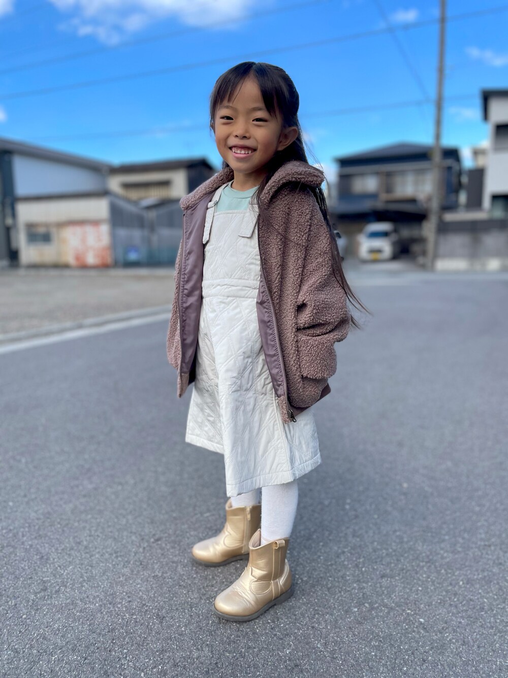 最近寒いと感じ始めたのか ようやく上着を羽織ってくれるように なりました🤣🤣 もう一月の中旬よ…❄️ ボアジャケットは120で買って さらにゆったりと着てもろてます🐧✨
