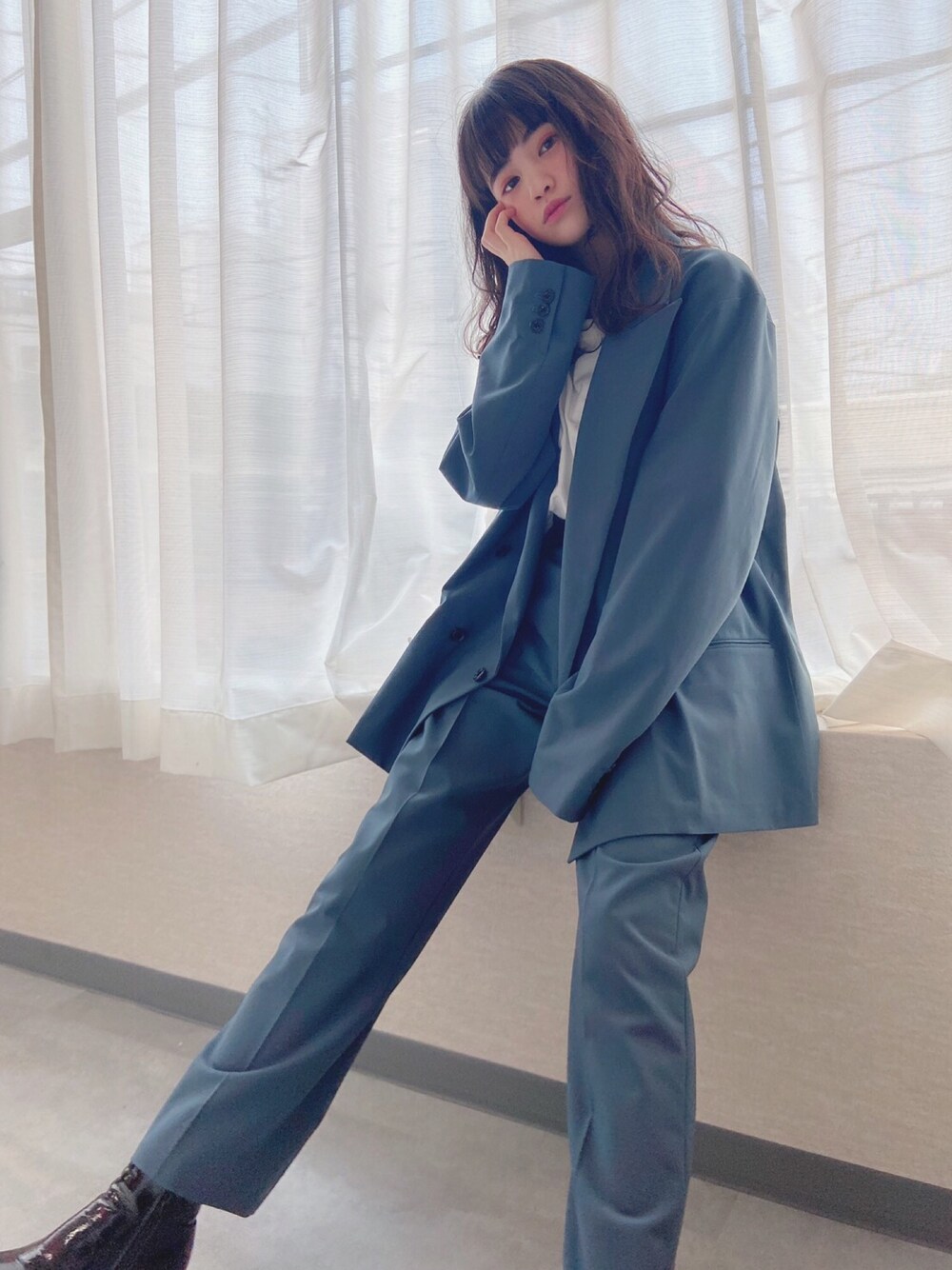 セットアップコーデ! このアウター実は両脇がボタンになってて全部外せばポンチョみたいに着ることも可能です! パンツは後ろにスリットがはいってます。 ユニセックス商品! 私は上はワイドめです! 撮影のオフショでお邪魔します🥵
