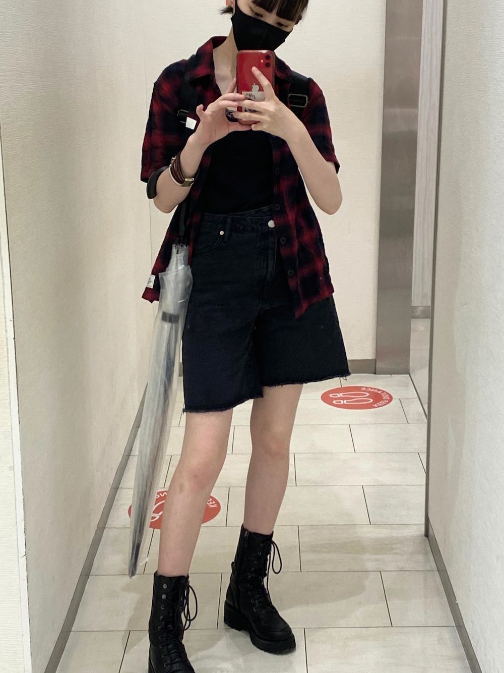 夏のNANAっぽロックコーデです。 わかりにくいですがパンツはグレーになってます(見つからなかった) あんまり派手なロックはちょっと、、って方に、基本はピンク(レッド)とブラックの2色遣いなのであまり顔が負けることはないです!! 写ってないですが髪型は上で2つのお団子、手首に派手なブレスレットがあるのがポイントになります(足とか腕を出すなら少し目がいくものを置くべき) 靴もゴツめがロック感でて死ぬほど可愛いです! 厚底サンダルとかならめちゃめちゃあり。ただ夏っぽくなりすぎるから私は避けました! 中は普通の見せキャミ、夏本番ならチューブトップだけでもかわよしです。 何か詳細欲しければInstagramまで!