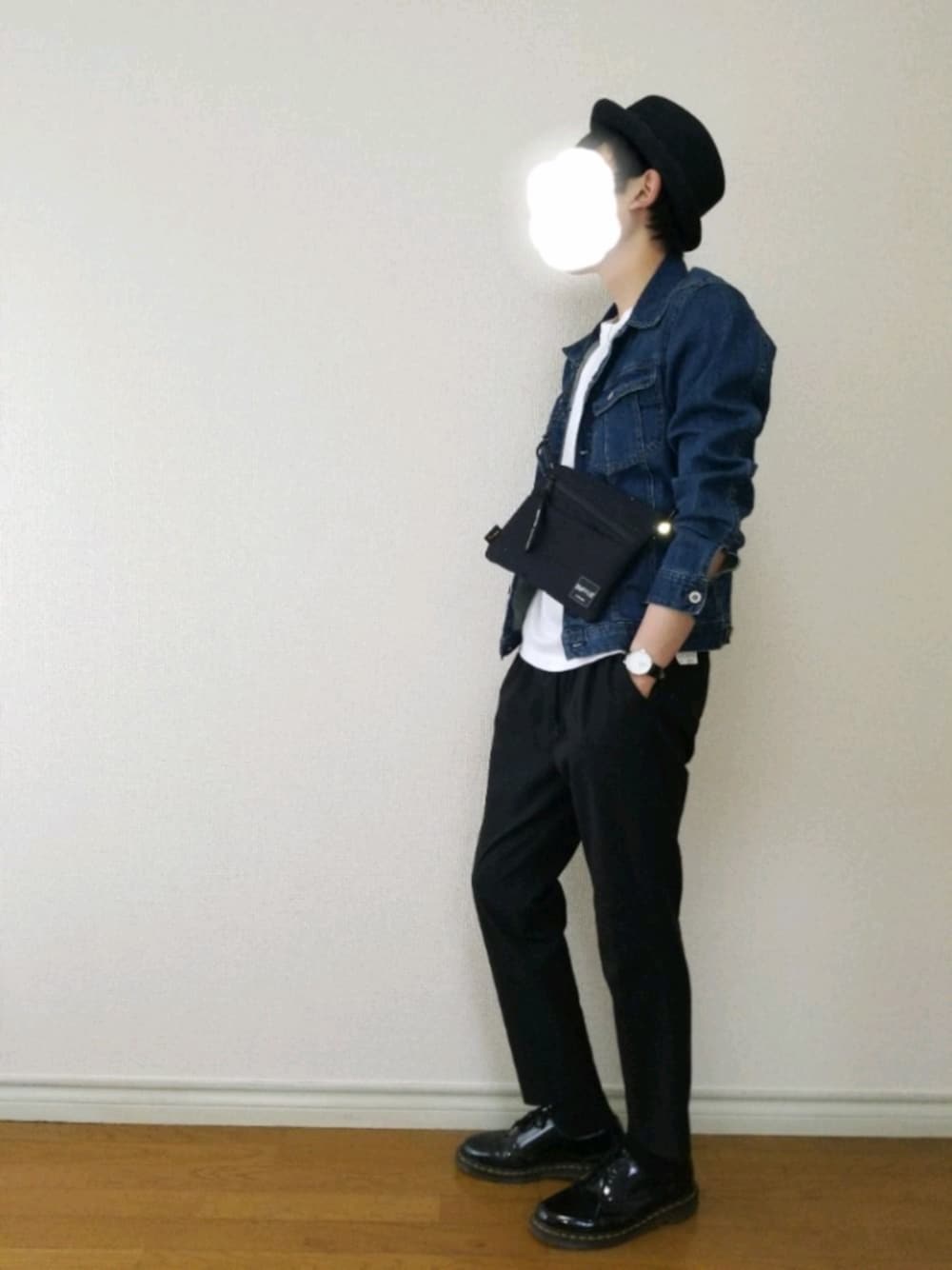 こんばんは! 昨日も多くの方々が見てくださり本当にありがとうございます! 本日はデニムジャケットのコーデです! 正直アウターもう必要ないことが多いのですが、早朝だけはどうしても半袖だと寒いのでコーデに組み込んでます! シンプルにテーパードスラックス、革靴、白Tシャツを合わせました! もう鉄板のコーデですよね! 私はハットが好きなのでハットを採用したのですが、少し綺麗めを強くし過ぎたかなと思い、サコッシュでカジュアル感を出しています! サコッシュやボディバッグなど小さなバッグはアウターの上からかけるのか、シャツの上にかけてそこからアウターを着るのか。その小さな違いでも他人からの印象が違うと思うので面白いアイテムだなと思います! 色合いは王道のモノトーン+ブルーです! 時計もシンプルな綺麗めのものを採用してます! 個人的にはハットが個性を引き出せているかなと思います! 長文読んで下さってありがとうございます!