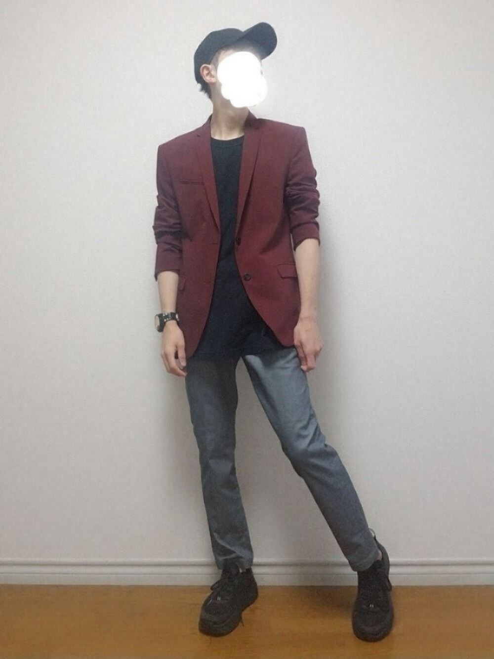 こんばんは🌃 昨日も多くの方々が見てくださり本当にありがとうございます🙇♂️ 本日はテーラードジャケットのコーデです! 大分涼しく半袖だけでは厳しいかなと思いコーデを組んでみました! メインアイテムは綺麗めよりにして小物はカジュアルにしてバランスとって遊んでみました! テーラードジャケットですがこれはZARAのものです! 3年くらい前のモデルなのですが、ボルドーで光沢かかったこのテーラードジャケットに一目惚れして購入しました😆 ただひとつ後悔がありましてセットアップで着ようという考えが当時頭になくパンツを一緒に購入しなかったことです😨 赤系のテーラードジャケットは派手さがあるので万人受けしづらいかなと思いますが、個人的には好きなアイテムです! インナーはユニクロのクルーネックTです。 メインからサポートへですがこのアイテム万能すぎですね😅 パンツはグレーのスラックスです。 ボルドー系にチャコールグレーは相性がいいので採用しました。 光沢かかっていて安っぽくないところがいいです🙂 靴は黒スニーカーです👟 全体的に良くきめるのと外しで使っています! ここで白スニーカーを合わせてもまた別の感じになるので良いと思います! 帽子は黒のキャップです🧢こちらもカジュアルアイテム要員で採用しました。 黒スニーカーとインナーシャツと黒キャップでサンドイッチしてます😊 色合いはモノトーン+ボルドーです! 個人的には冬この組み合わせが最高なのですがウォーミングアップがてら組み合わせました! ここまで長文を読んで下さりありがとうございました🙋♂️