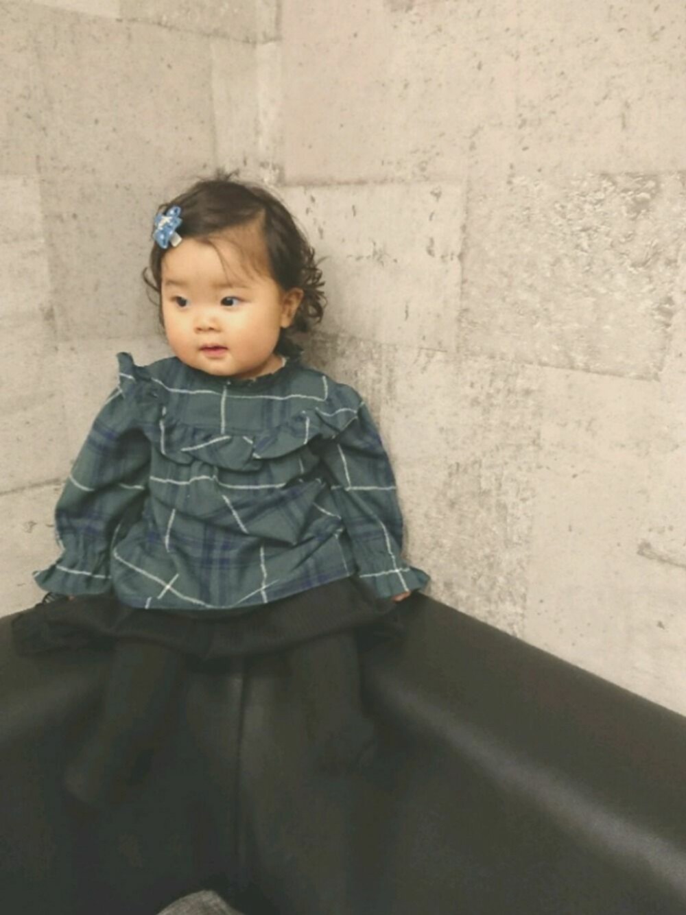 見ていただいてありがとうございます😄! チェックのブラウスと、黒のスカートで大人っぽくしてみました♥️ 80㎝だけど、ブカブカ(笑) そして、スカートとタイツが背景に同化してて分かりにくい💦