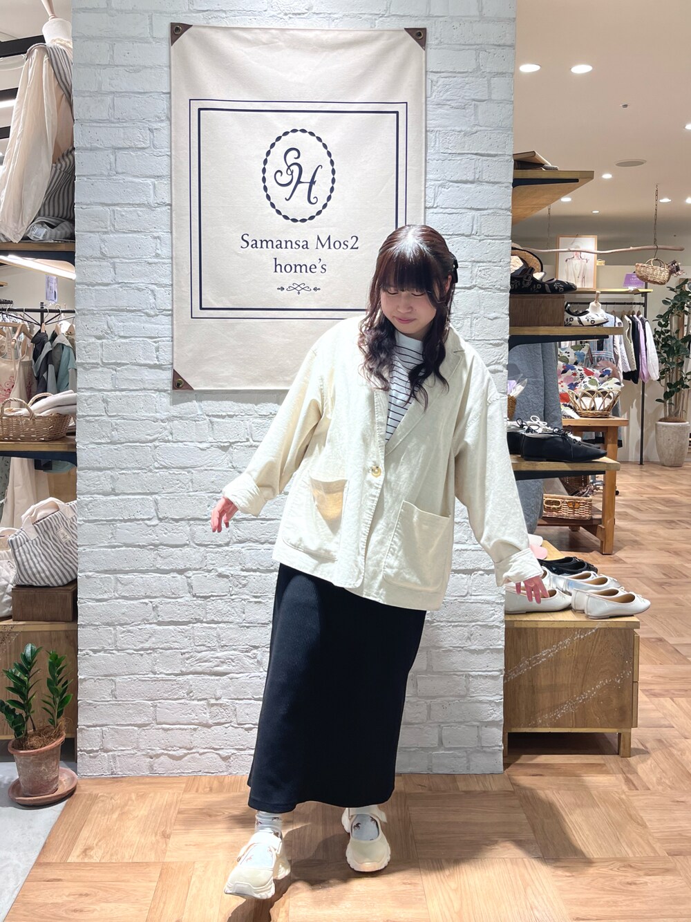 ボーダーのTシャツに綿麻のジャケットを組み合わせてカジュアルで明るい春らしいコーデにしてみました🦓🌼 ボトムスもリブスカートですっきり大人っぽく✨