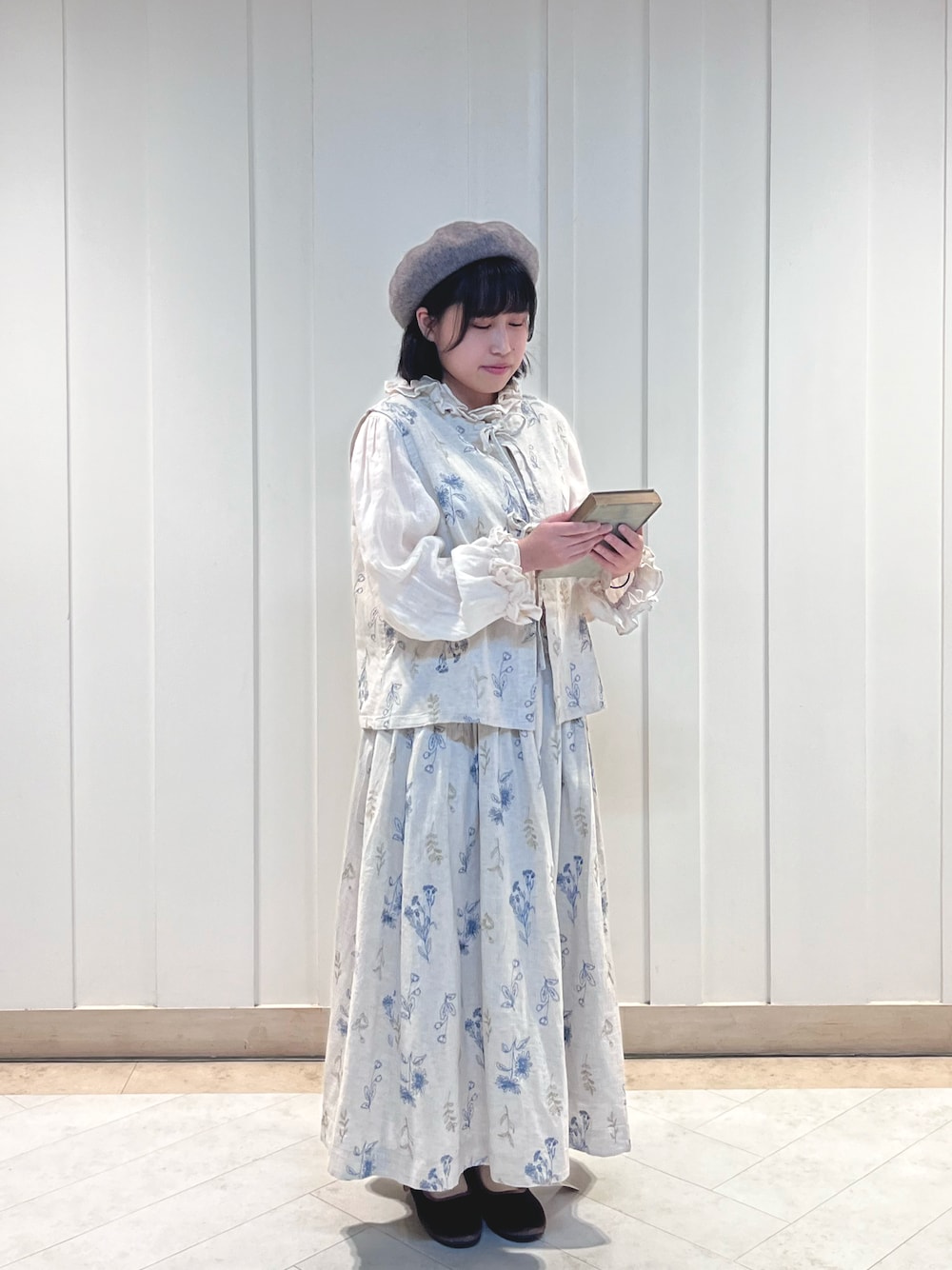 総刺繍がとってもかわいいセットアップコーデにしてみました! 麻が使われているので軽い着用感で今の時期にピッタリです❕