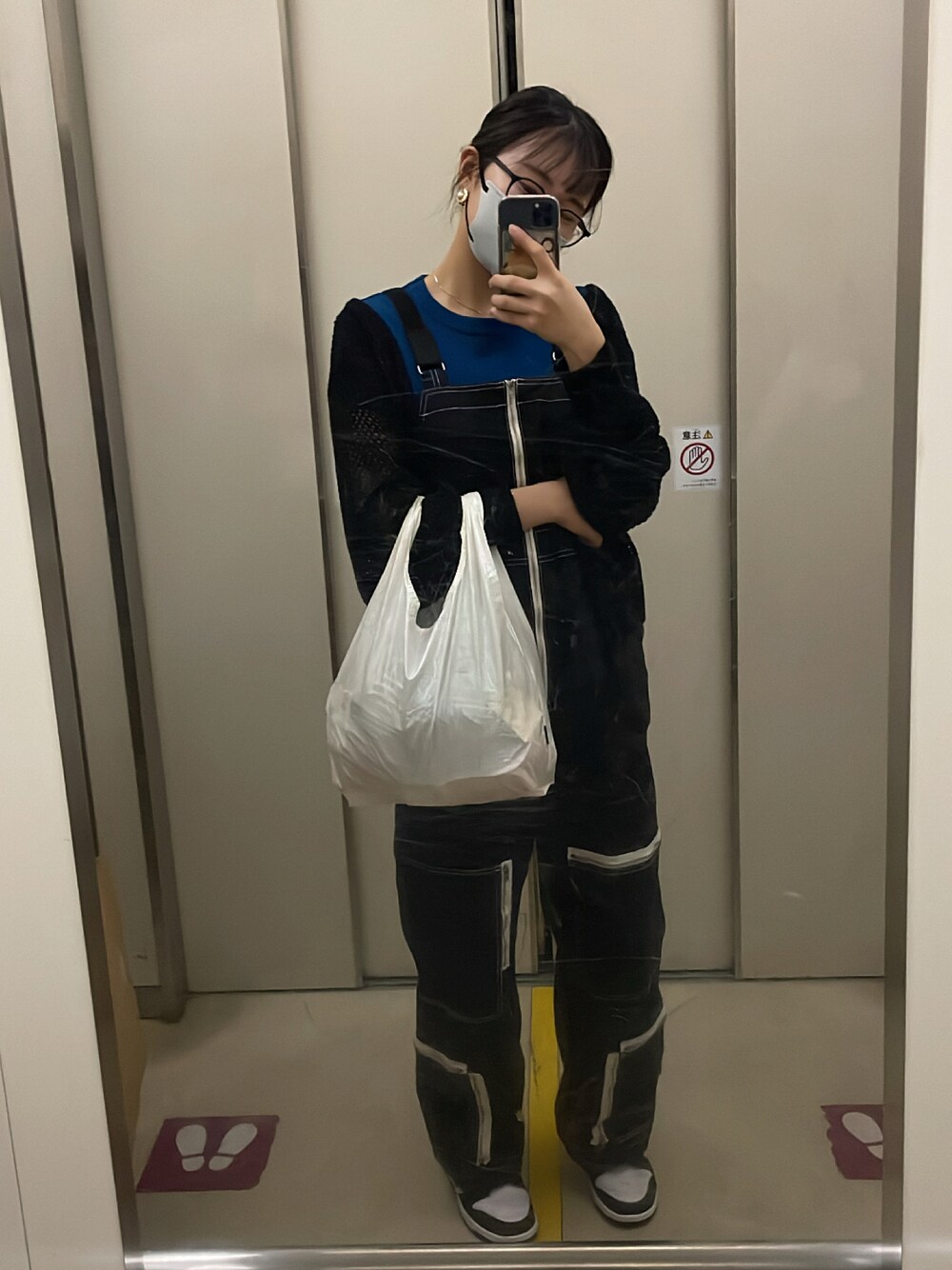 大学生の日常🦋 講義の前にイオンモールでお買い物🌟🙈 オーバーオールが黒なので髪を下ろすと暗い印象になるからアップしてみましたぁ😵💫 羽織がないと夜はまだ寒い😵😵