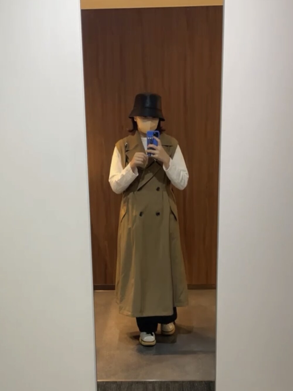 大学生の日常🍄🍄 かのトレンチコートは3way になってて、 同じ服でもいろんなパターンで着れるの凄すぎる⭐️ まだ長袖つけて着るには暑かったぁ😫🌱 これがあれば秋乗り越えれる🔥
