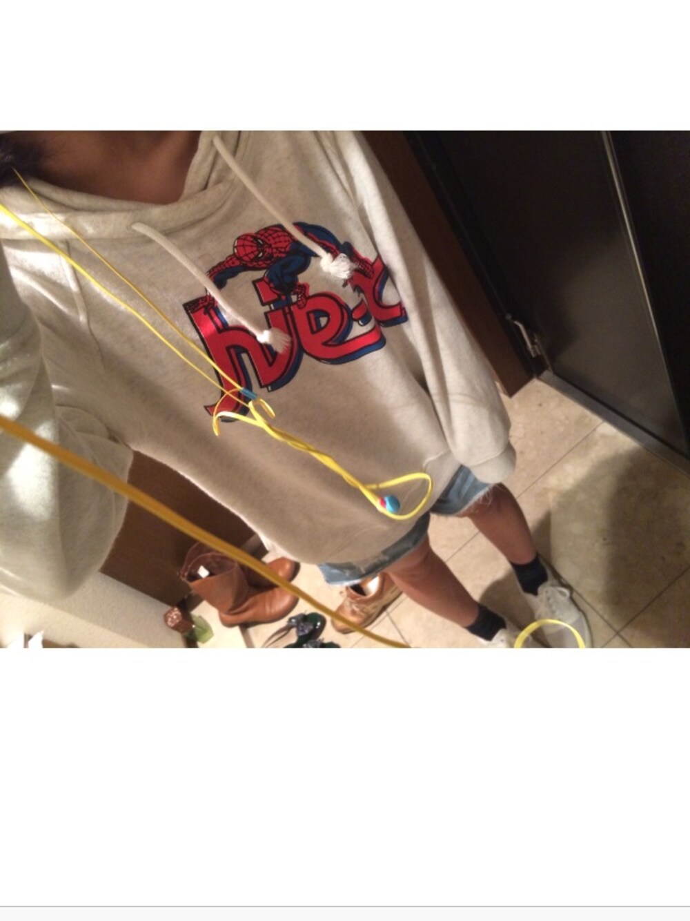 Uka.のパーカー「SWEAT BIG HOODIE SPIDER-MAN」を使ったコーディネート