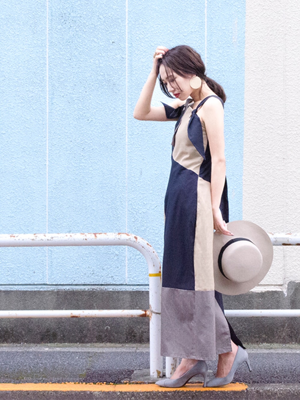 disem By SiiK 1st Collection ”Assemble” asymmetry dress / Navybeige URL http://www.disembysiik.shop