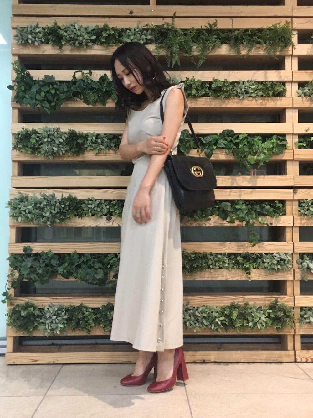 1st Collection 【Assemble】 one shoulder dress / beige ネックライン、ウエストの開きやランダムなハトメなど多くのアシンメトリーなディテールが施されたアイテム。 リネン混の生地は肌触りが良く着心地も抜群♪ ショルダーラインとウエストのディテールがセクシーな雰囲気も感じさせてくれる上品なワンピースドレスです。 gucciのカバンと赤いパンプスでパーティールックに🥂 HP→https://www.disembysiik.com Shop→https://disemonline.thebase.in/