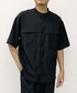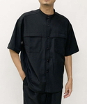 Wポケットワイドシルエットバンドカラーシャツ バンドカラーのWポケットシャツ。 前立てのドットボタンや胸部分の切り替えデザインがさり気ないアクセントになっています。