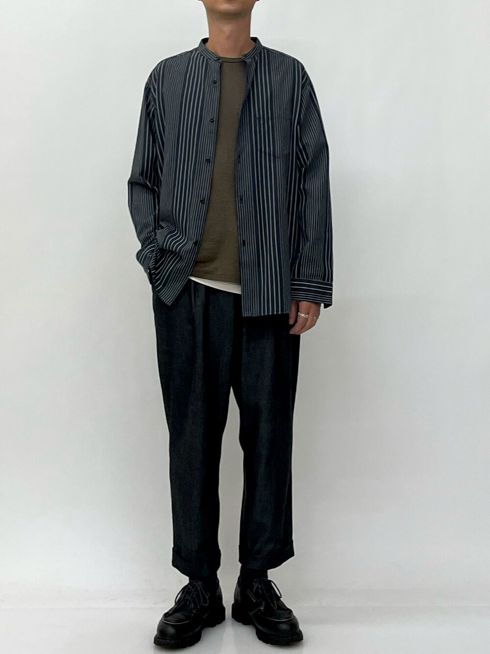 ishide(a.v.v)のシャツ/ブラウス「ビエラストライプワイドシルエットバンドカラーシャツ」を使ったコーディネート