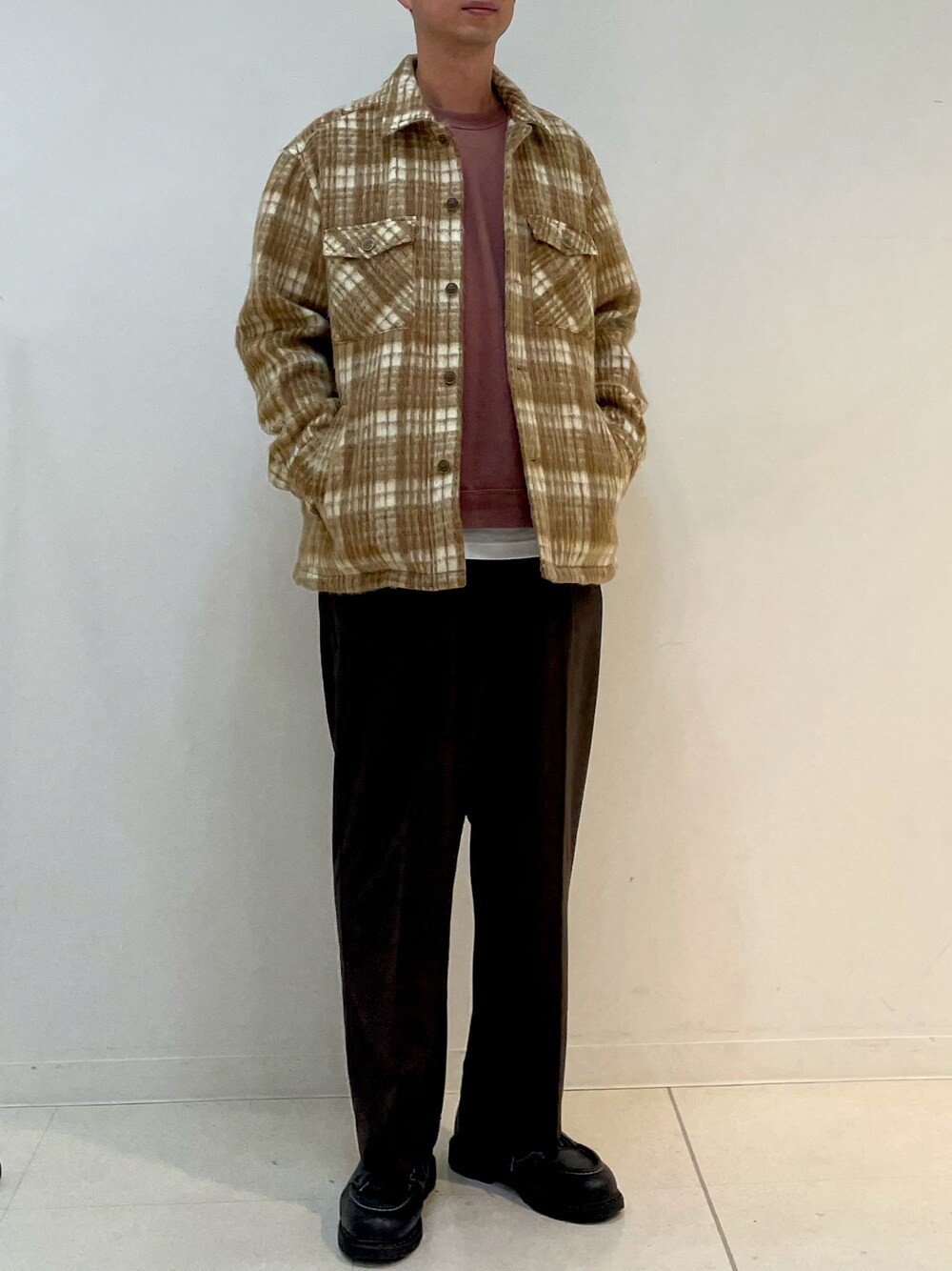 ishideのその他アウター「シャギーチェックCPOジャケット」を使ったコーディネート