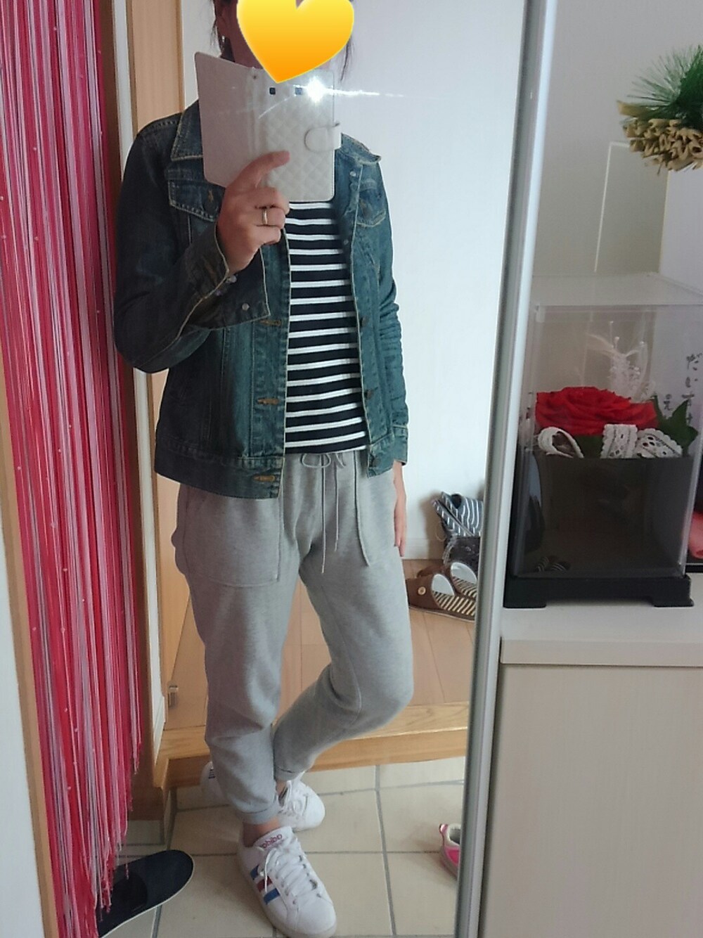 今日はベビィとサークル活動。 軽い体操するから動きやすさ必須で。 スウェットの裾リブ、半曲げしてみた。。