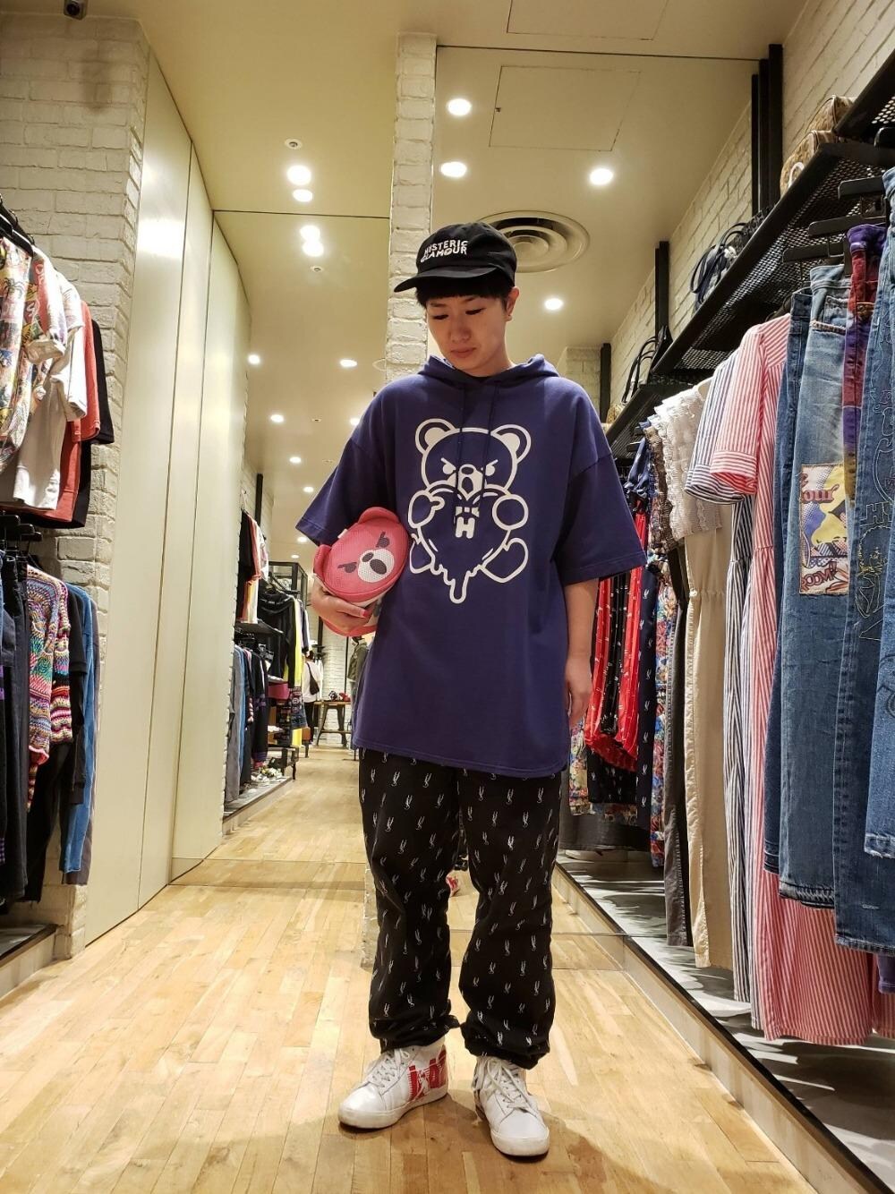 ISHII(HYSTERIC GLAMOURラゾーナ川崎プラザ店)のキャップ「HYS SYMBOL LOGO 刺繍キャップ」を使ったコーディネート