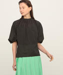 昨年も人気だったワンピースですが、今年はバックにリボンのデザインが入りより女性らしい印象に。 落ち着いたブラックベースのドットブラウスと辛口のバッグを合わせ、ほど良い甘さのスタイリングにしました。