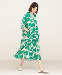 〈CINQUANTA〉別注のライダースジャケットを、春夏らしい柄のワンピースと合わせてスタイリングしました。 ジャケットのハードさとワンピースの女性らしさが好相性。 足元はサンダル合わせで抜け感を。
