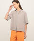 〈Ballsey〉のボウタイブラウスは淡いブルーとブラウンの落ち着いた色合わせが素敵なので、優しいカラーバランスのナチュラルな雰囲気でスタイリング。 夏らしいバッグもシーズンらしさを引き立てます。