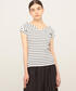 コンパクトなボディのトップスは、ボリュームのあるボトムスと合わせてメリハリを。 デコルテの開き方が女性らしいトップスは前後逆に着ても素敵です。 モノトーンでまとめてシャープな印象にスタイリングしました。