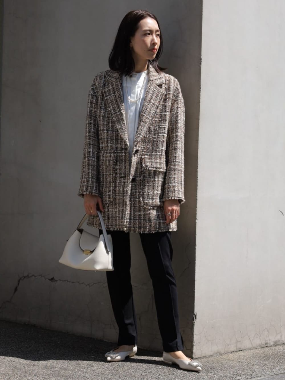 ラメ糸がキラキラと光る〈Ballsey〉のテーラードジャコット。 マニッシュさがありながらも女性らしい印象のアイテムです。