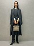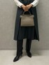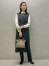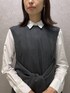 ワンピースとジャケットをセットアップを着用。 ワンピースはウエストのリボンが特徴的で、軽く結ぶだけでもラインが綺麗です。 ワンピースの中には、襟にラメ糸の刺繍が入ったシャツを合わせてポイントに。 オフィスにもお出かけにもおすすめのスタイリングです。