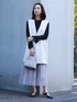 プリーツスカートのフェミニンさもジレを羽織ると甘すぎず、バランスよく着用できます。 インナーのニットは一見シンプルですが、袖口のレースのデザインがポイント。 シューズはブラックのパンプスを選び、全体の印象を引き締めました。
