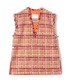 〈LINTON〉社の高品質なファンシーツイードを使用したジレは、オレンジベースにゴールド糸がキラキラと光り、華やかな表情が魅力の1着。 ゆとりのあるサイズ感と少し長めの着丈なので、様々なシルエットのインナーやボトムスと合わせていただけます。
