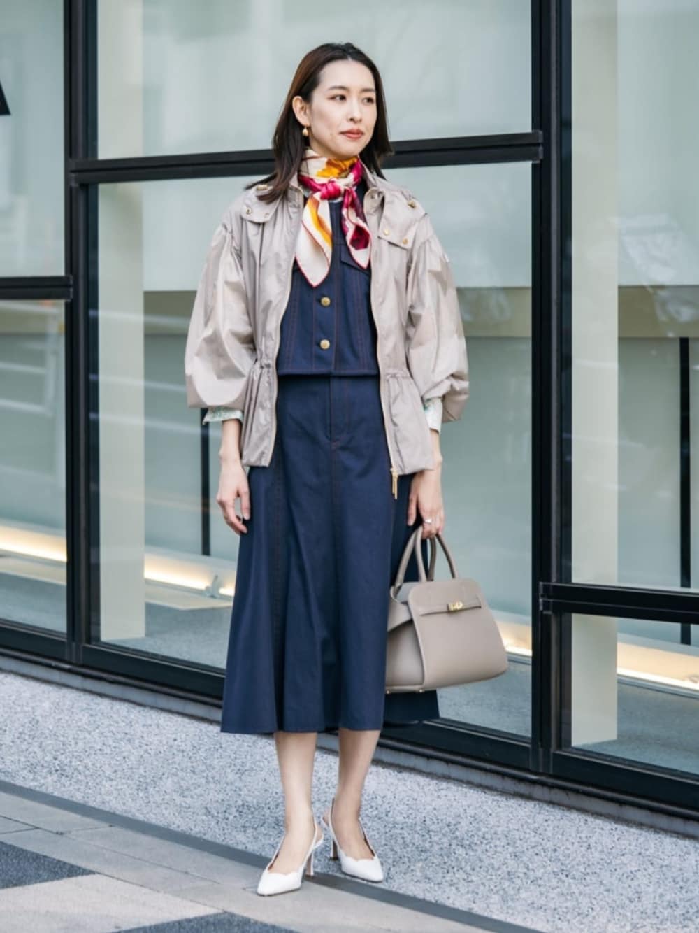 〈TATRAS〉のフーデットコートは、ゴールド金具やギャザーの入ったアームホールなど、スポーティーすぎず女性らしい着こなしができる別注アイテム。 エレガントなアイテムを使ったスタイリングにも合わせやすいので、通勤スタイルなどにもおすすめです。