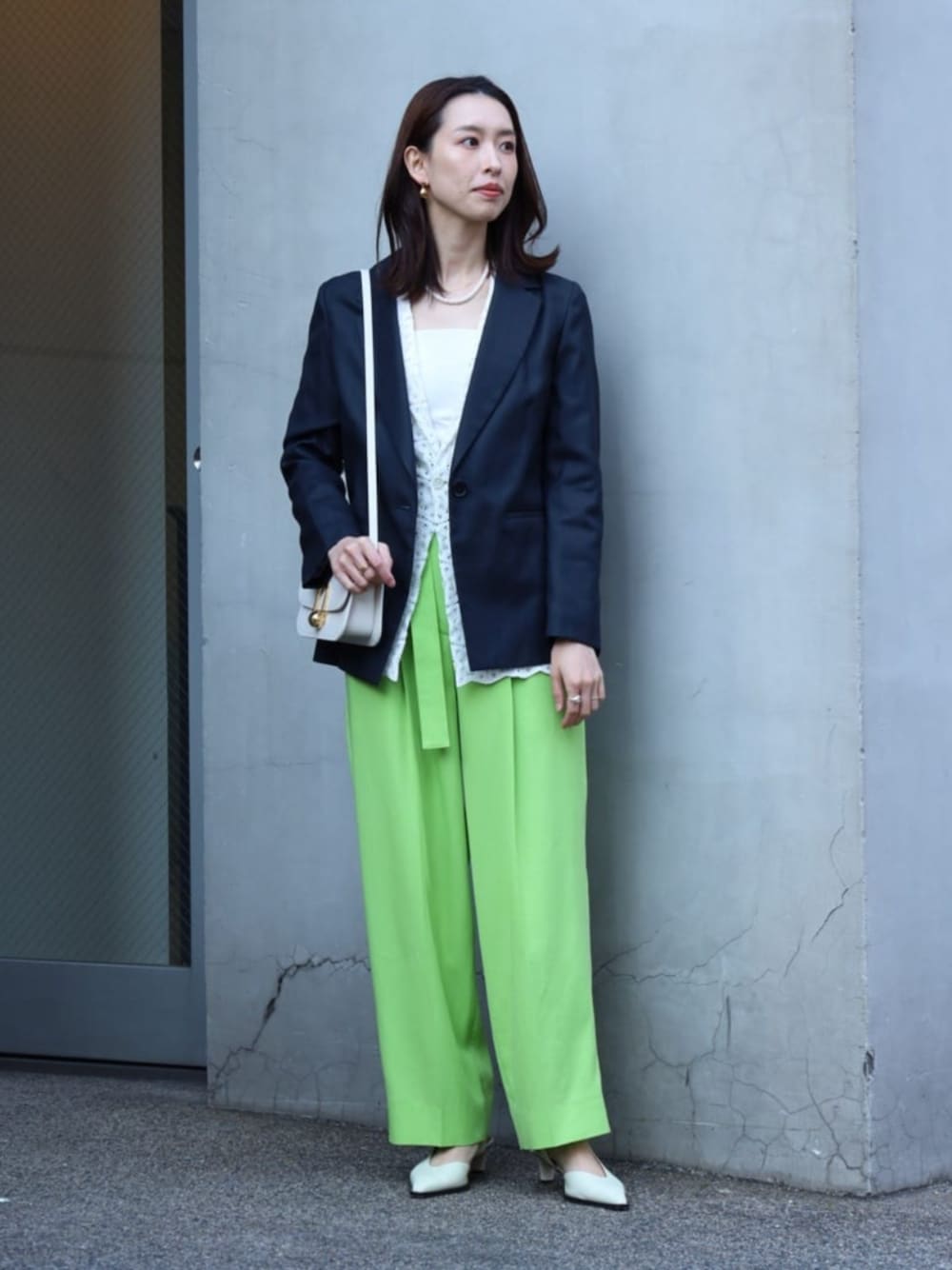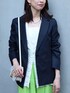 〈Ballsey〉のドライコットンツイルジャケットは、薄地で軽い着心地なので暑い時期の羽織り物として活躍します。 シンプルなデザインでオフィスシーンにも最適。 ご自宅での手洗いも可能です。 カラーパンツのスタイリングも、ネイビーのジャケットで印象を締めると着用しやすいです。 レースのブラウスをレイヤードしてポイントに。 ※パンツはサンプルのため、36サイズ着用。 商品詳細については使用アイテムをご確認ください。