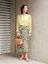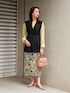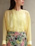 シアー感のあるブラウスとジャガード素材のスカートを合わせた華やかな春のスタイリング。 デニムライクな素材のジレを締め色で合わせると、華やかさを少し抑えて着こなしていただけます。 お洋服にインパクトがあるので、小物はベージュカラーを選び馴染ませることで、すっきりとしてバランスがよくなります。 商品詳細については使用アイテムをご確認ください。