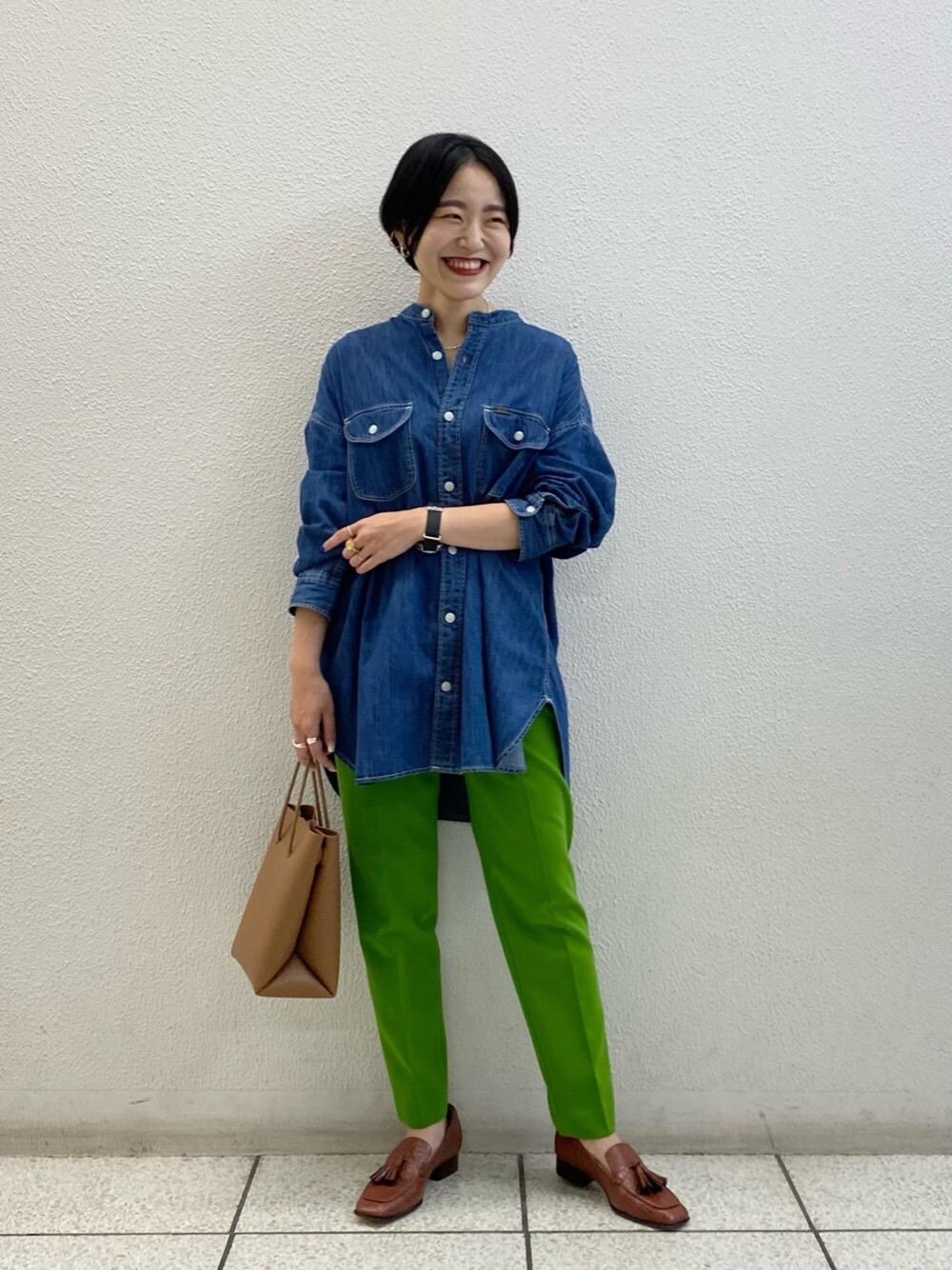 [身長] 156㎝ [普段着用サイズ] pants:36 shoes:23.5㎝ [サイズ感] pants:やや細め [素材感] shirt:柔らかみのあるデニム生地 pants:肌馴染みの良い柔らかい質感 [コーディネートポイント] シャツはボタンを開けてきれいめに、すべて留めてカジュアルに、気分に合わせて着こなしていただけるデザインです。パンツは柔らかい質感で着心地も良く、着丈も長すぎないので小柄な方にもおすすめの一枚◎