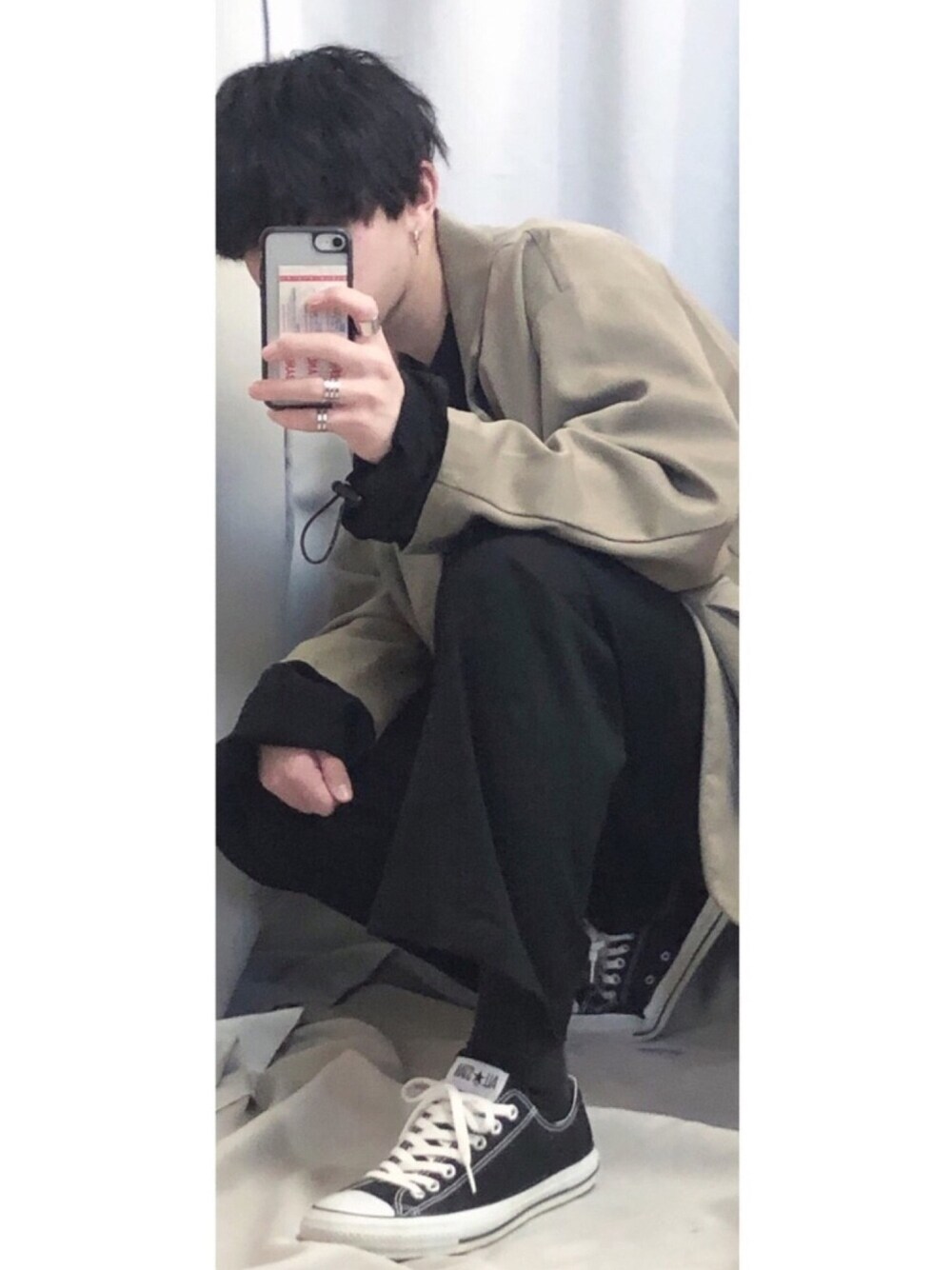 モードコーデ 閲覧ありがとうございます😌 今回は上下ブラックの組み合わせにベージュのジャケットでモード風に組みました。