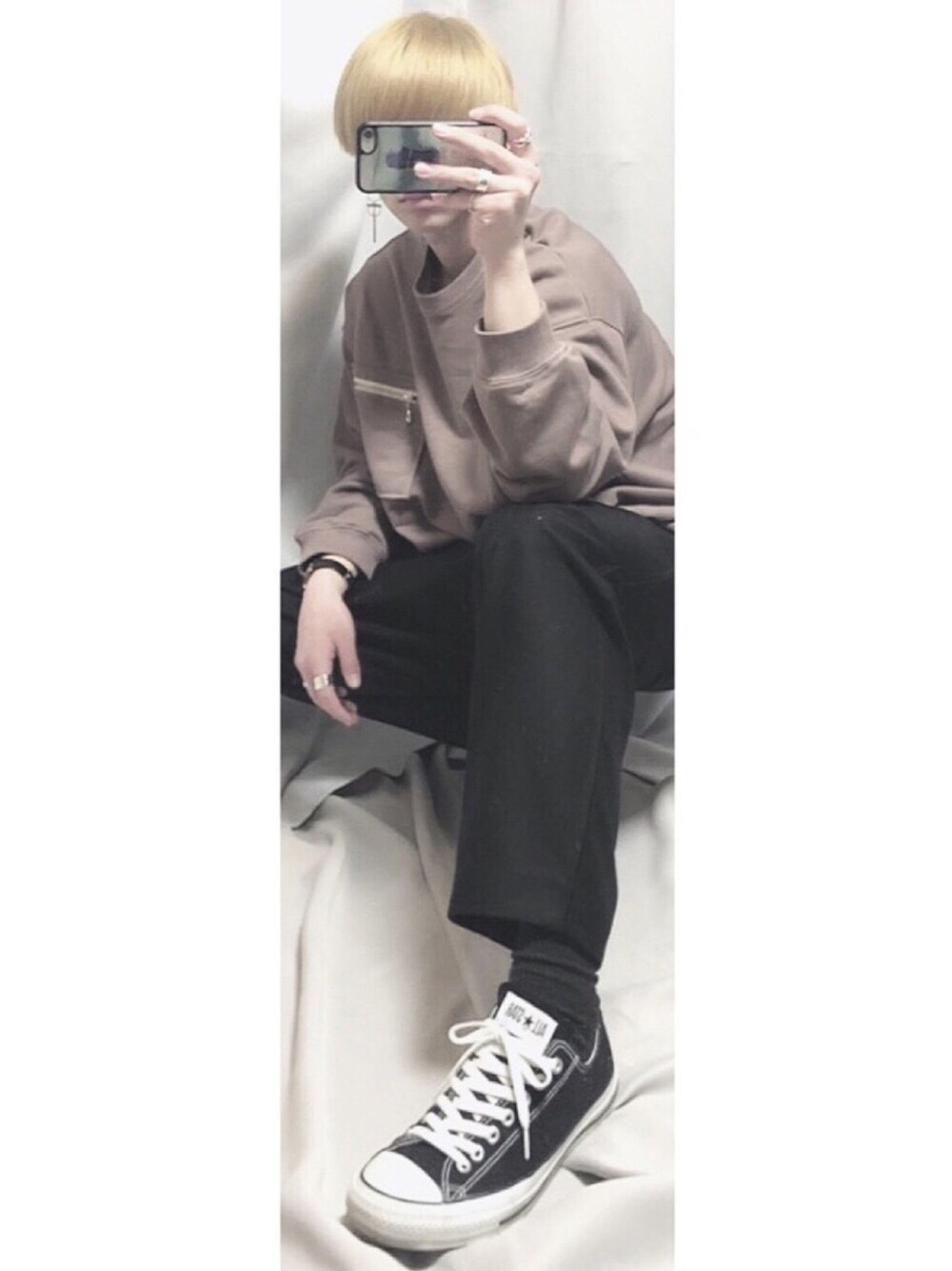 一足先に春コーデ 閲覧ありがとうございます😊 今日は着たかったから春コーデにしました、オーバーサイズのトレーナーに黒のパンツでシンプルに組みました。