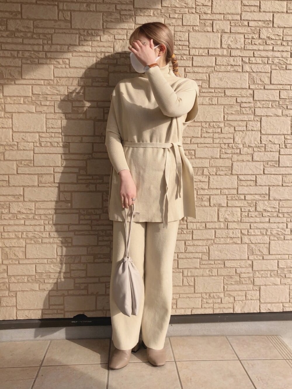 udon(23)のセットアップ「レイヤードニットセットアップ」を使ったコーディネート