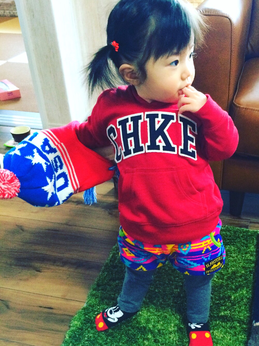 娘ちゃんコーデ♡ 完全にパパ好み😂 ニット帽をおとなしく被ってくれる方法ありますか?😩 Instagram : ishone1613