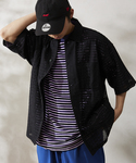 ishsatのシャツ/ブラウス「パターンレース オープンカラー半袖シャツ」を使ったコーディネート