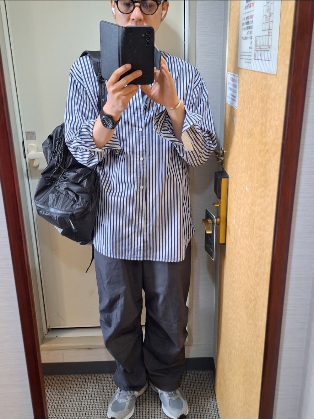 旅行2日目(*ˊ˘ˋ*) ユニクロメインのコーデ。 +Jのストライプシャツは3年ほど着てますがお気に入り😍