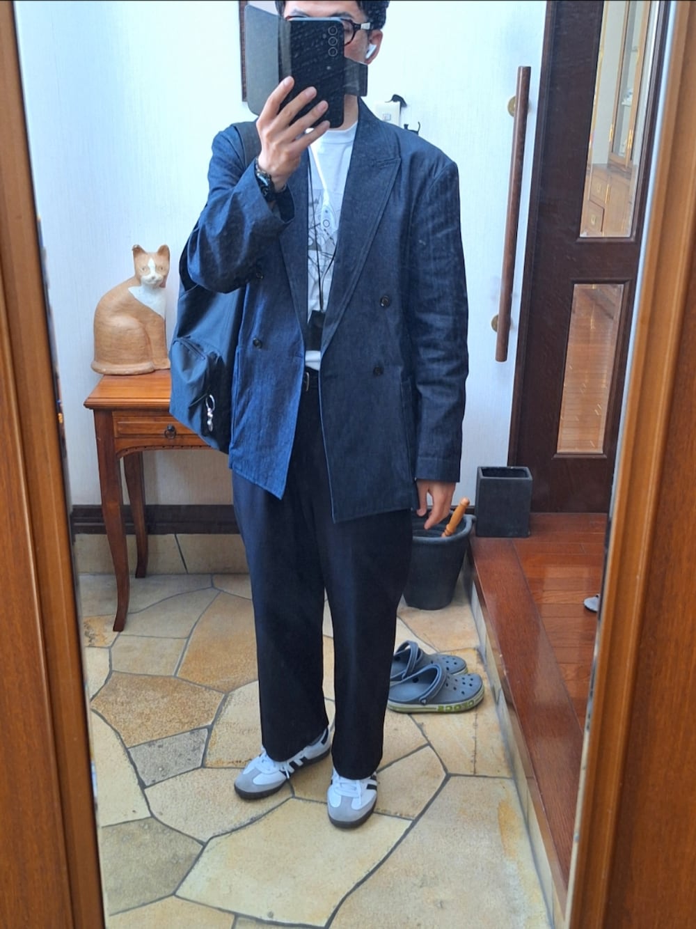 みなとみらいにお出かけしてきました(*ˊ˘ˋ*) 暑くなりそうだったので内側は半袖で💦デニムのダブルジャケットは薄めの素材でサラッと羽織れてお気に入りです。