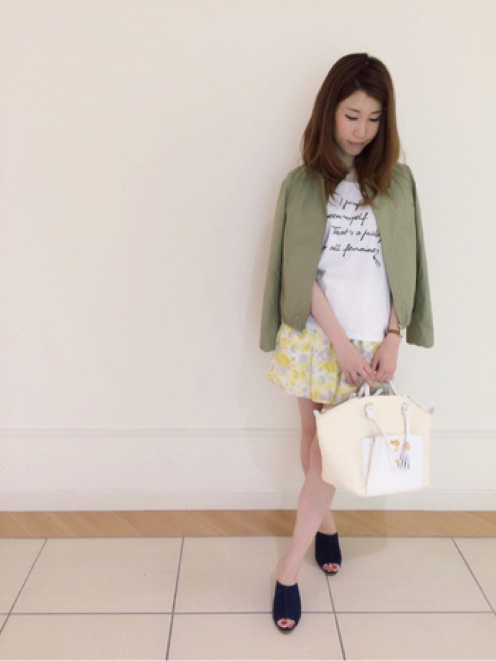 黄色の花柄キュロットでTシャツスタイルをガーリーに♡ 珍しく膝上で私的に新鮮コーデ!