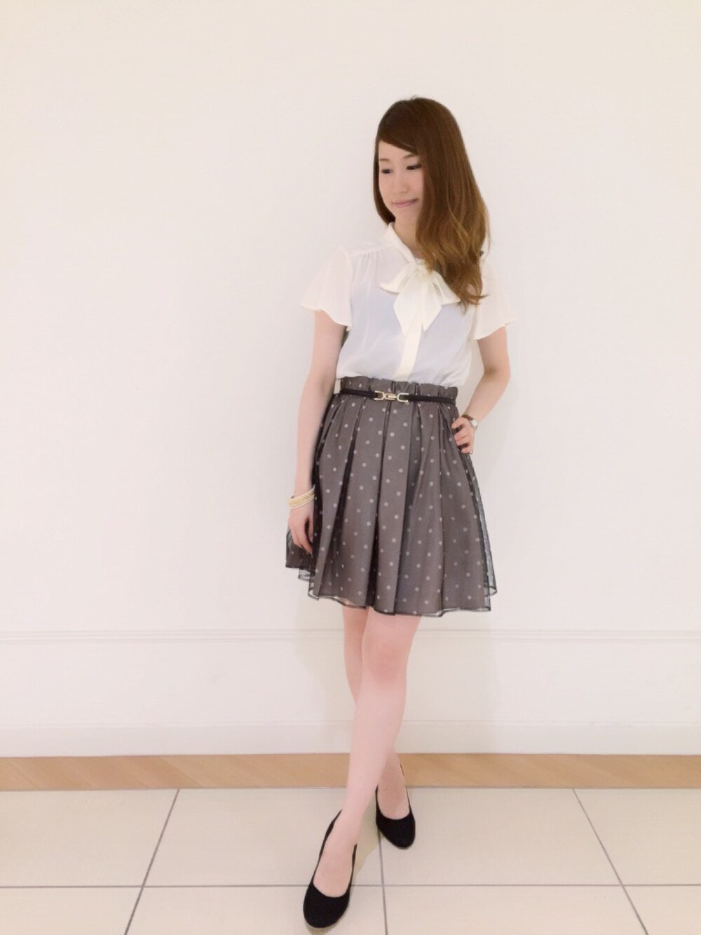 いっしーのトップス「リボンフレアスリーブブラウス」を使ったコーディネート