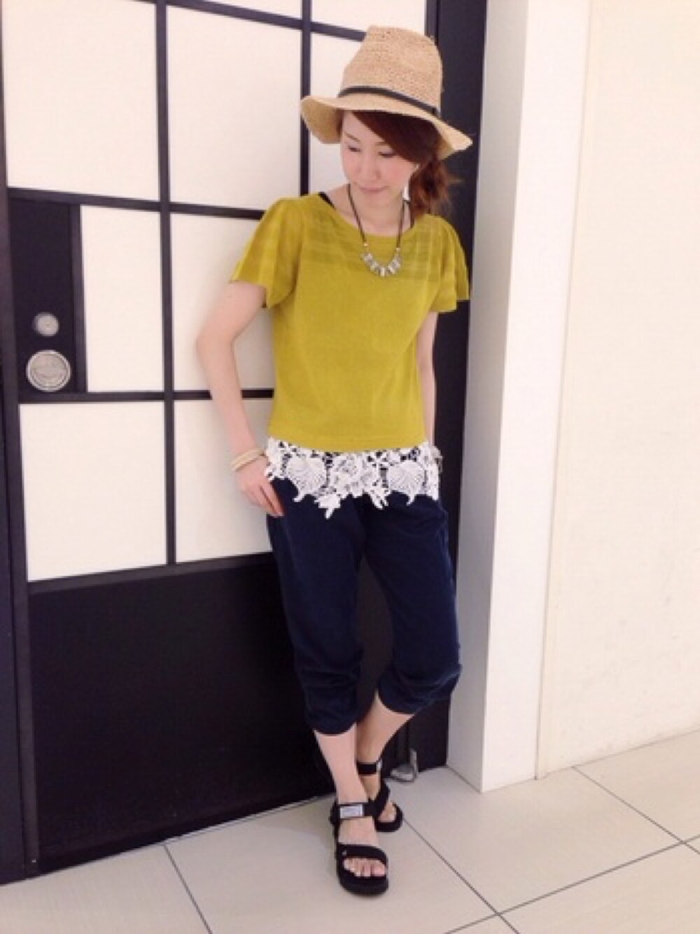いっしーのTシャツ/カットソー「裾モチーフレースメッシュプルオーバー」を使ったコーディネート