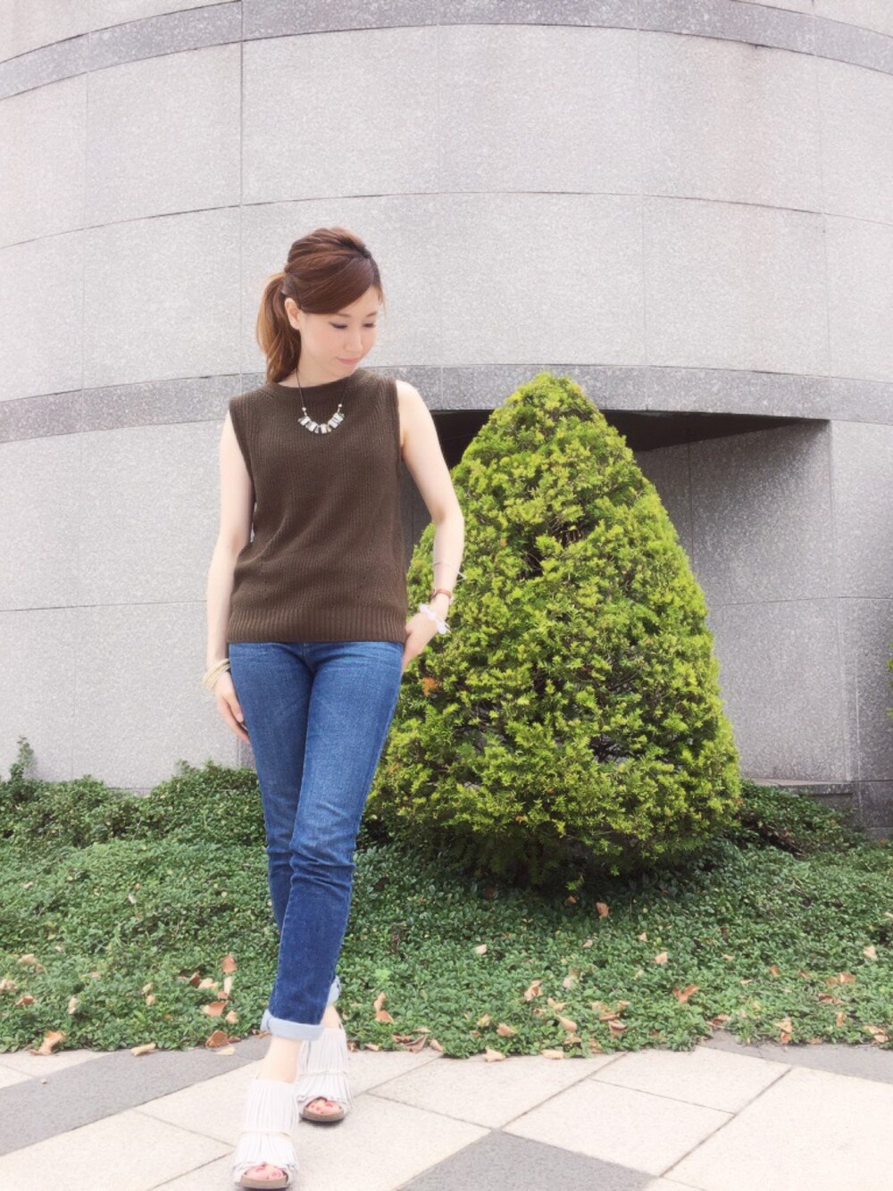 いっしーのワンピース「ニットベストツインセットワンピース」を使ったコーディネート