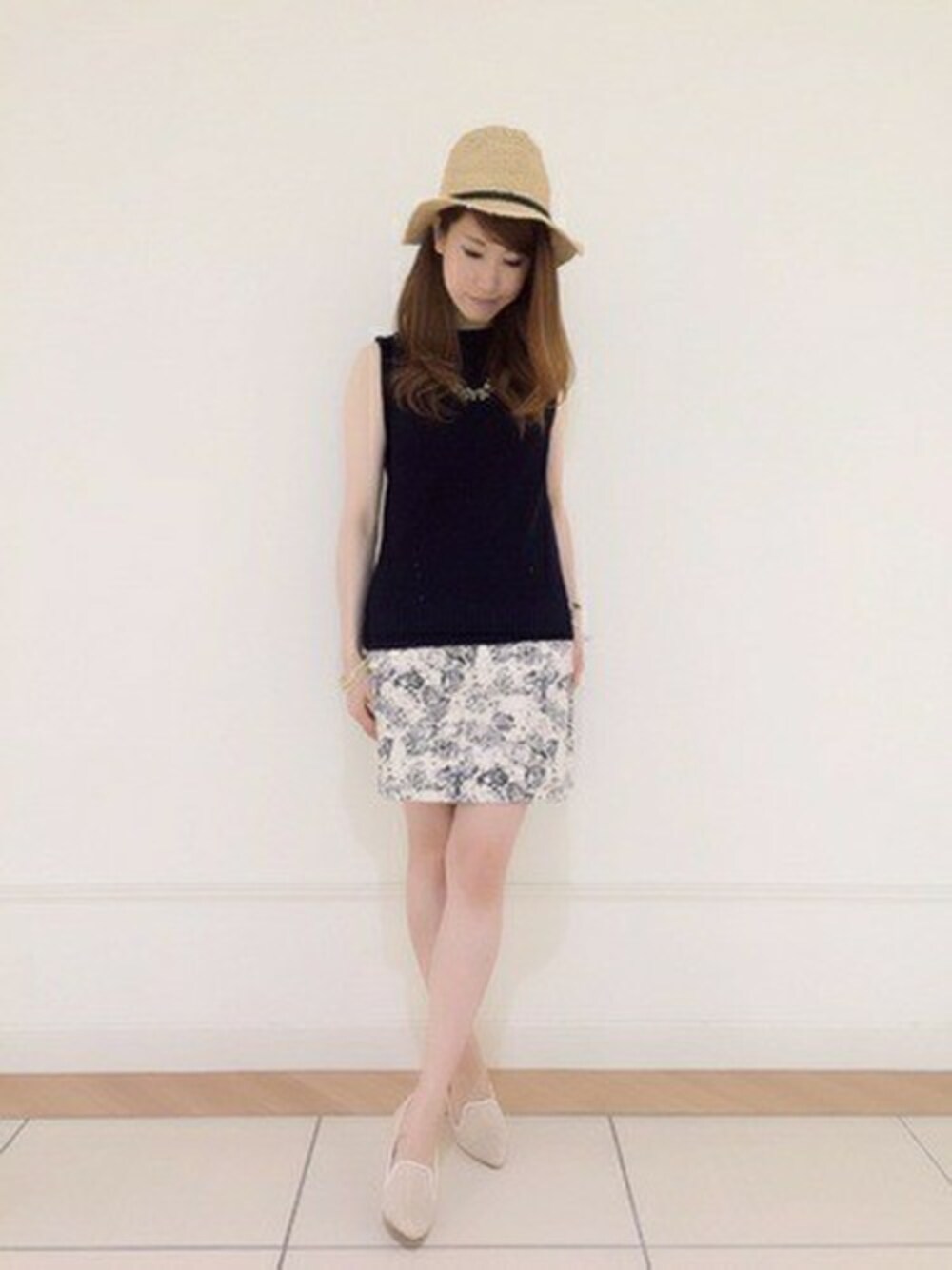 ラボの人気タイトスカート! 小花柄が上品なうえに ふくれジャガードで手触りもとってもいいです! ニットベストは今から着れる秋アイテムでお気に入りです♡