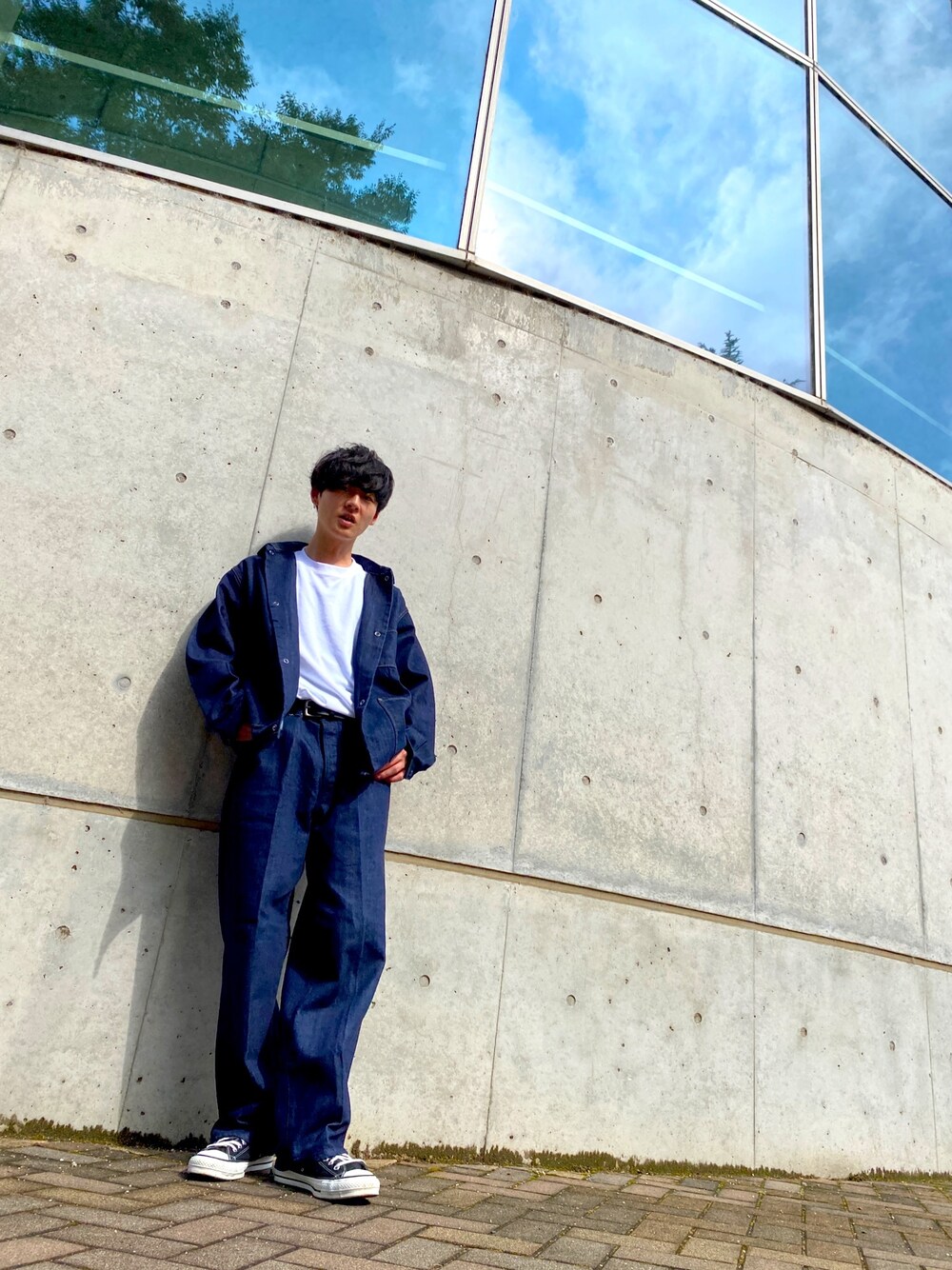 iskwtkyのカバーオール「marka / マーカ:COVERALL - 13oz organic cotton denim -:M20C-12BL01C[COR]」を使ったコーディネート