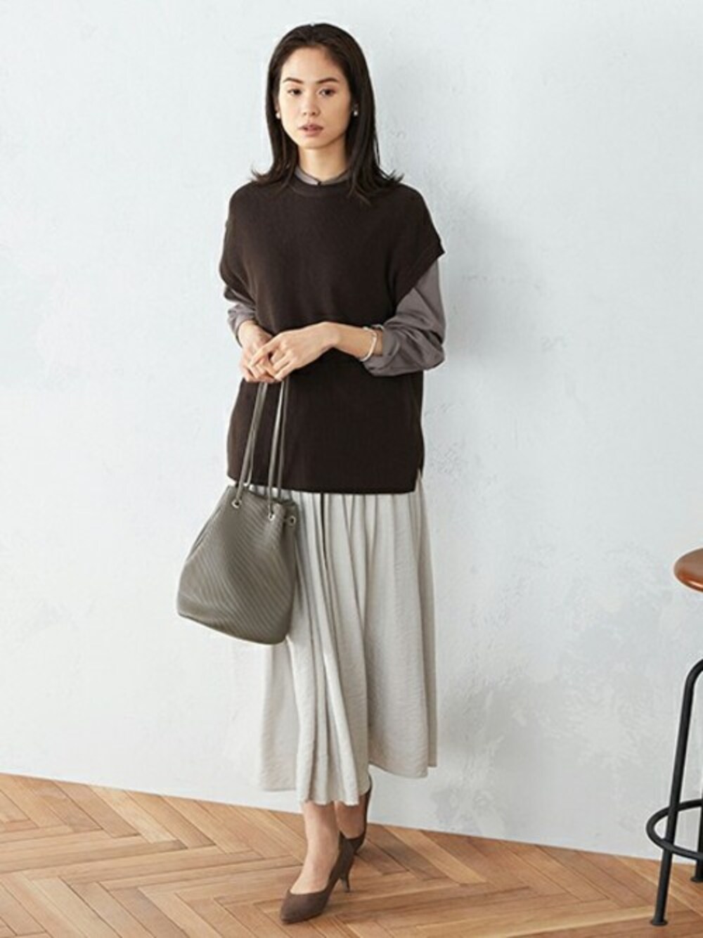 COMME CA ISM OFFICIALのベスト「【カラバリ豊富】 ドロップショルダー ニットベスト」を使ったコーディネート
