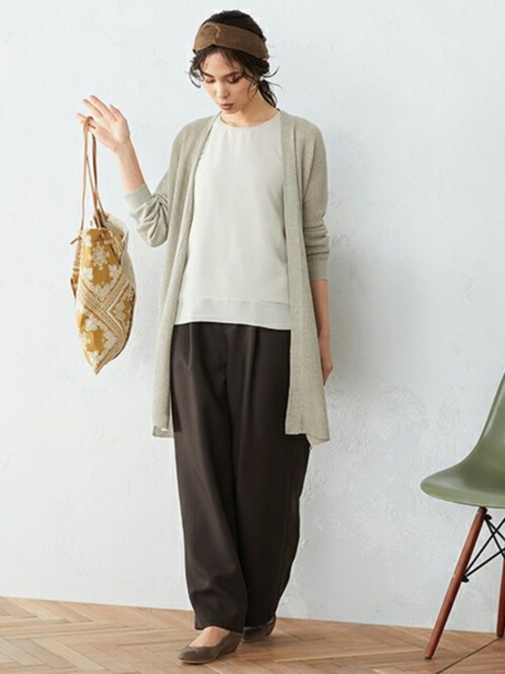 COMME CA ISM OFFICIALのカーディガン/ボレロ「ノルマンディーリネン ロング ニットカーディガン」を使ったコーディネート