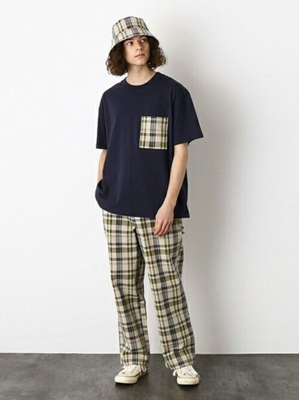 COMME CA ISM OFFICIALのTシャツ/カットソー「チェック柄胸ポケット ワイド半袖Tシャツ」を使ったコーディネート