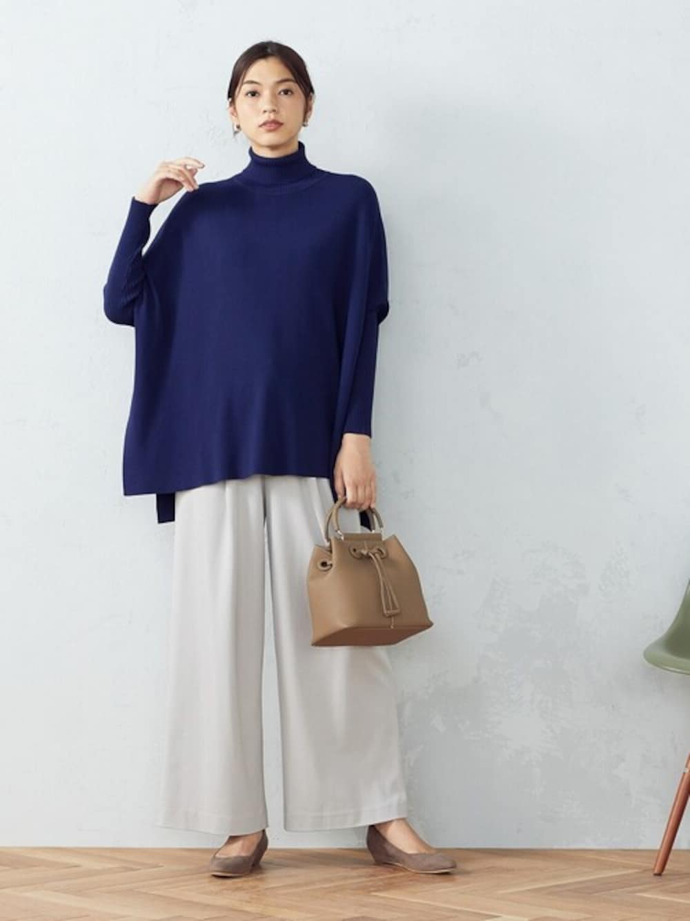 COMME CA ISM OFFICIALのニット/セーター「【WEB限定/一部店舗限定カラー:ネイビー、グリーン】 ハイネック ニットポンチョ」を使ったコーディネート