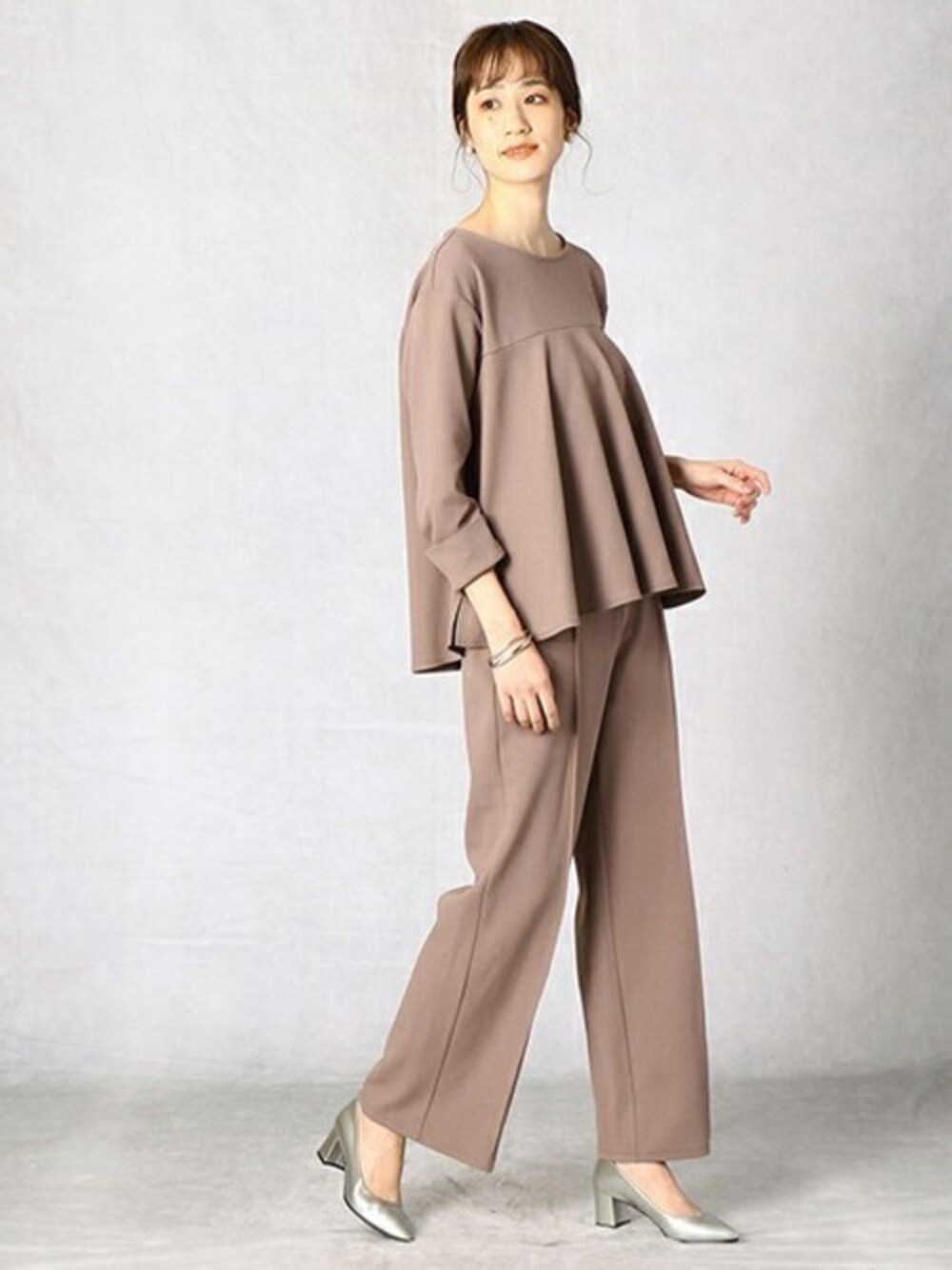 【コムサマチュア】 セットアップでも単品でも着まわせる、ジャージー素材のプルオーバー。 ちょっとしたお出かけからカジュアルなシーンまで、幅広く活用できます。