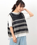 ゆったり目なシルエットのかぎ針風ニットベスト。 ワイドパンツと合わせてナチュラルスタイルにピッタリ。 短め丈のワイドパンツなので低身長の方にもオススメです。