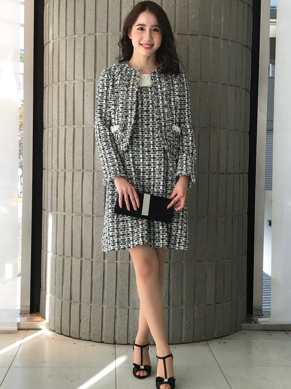 ● ツイードの定番ノーカラージャケットは 何に合わせても様になる万能ジャケット ● 【素材特徴】 上品な艶感があり軽くてやわらかいラグジュアリーツイード素材です。数色をミックスさせた独特な色合いと、糸自体の光沢に優れ表面の立体感が綺麗目な印象です。 【デザイン】 ”上品”かつ”華やか”に。女性らしいノーカラーのツイードジャケット。衿元と前端にフリンジ、ポケットには繊細なお花をあしらっています。きちんとしたシーンにもぴったりです! 【コーディネート】 同素材のワンピース、もしくはスカートと合わせてセットアップで着こなすのがおすすめです♪女性らしく柔らかい印象を与えてくれるので、きちんとしたシーンにもぴったり!デニムパンツと合わせてもかっこよくキマります☆